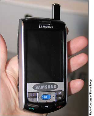 Samsung SCH-i730 is a dual-band CDMA phone. It features 65k TFT display, QWERTY keyboard, Bluetooth, Wi-Fi, EV-DO high-speed data, Microsoft Mobile for Pocket PC Phone Edition 2003, GPS, SD memory expansion slot and built-in speakerphone. The i730 will be a replacement for the i700, which came out last year. Like some other recent Pocket PCs, this model will use a traditional tablet design, but it will sport a small QWERTY keyboard that is exposed when the screen slides up. The i730 will have several improvements over its predecessor, including a megapixel camera and support for EV-DO networks, which means it will have a theoretical maximum data-transfer speed of 2.4 MBps. This handheld will run Windows Mobile 2003 for Pocket PC Second Edition, so its 240-by-320-pixel display will offer both portrait and landscape modes. Samsung says it will have a 500 MHz XScale processor. This isn't a standard clock-speed for this chip, so the company may be approximating. It will have an SD slot with SDIO support and built-in stereo speakers. The exact dimensions of the i730 are not known, but those who have seen prototypes say it will be just slightly bigger than palmOne's Treo 600 series.