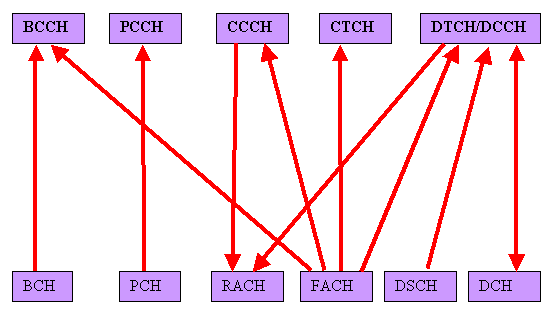 Channel structure The MAC operates on the channels defined below; the transport channels are described between MAC and Layer 1, the logical channels are described between MAC and RLC. Transport channels Common transport channel types are: