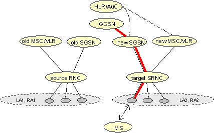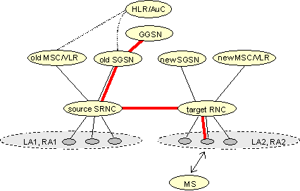 ![]() Fig 6: Before Combined hard handover and SRNS Relocation Procedure([9], Fig. 40) ![]() Fig 7: After Combined hard handover and SRNS Relocation Procedure([9], Fig. 41) The combined procedure is a combination of hard handover and SRNS Relocation. Fig. 6 and 7 explain the procedure.